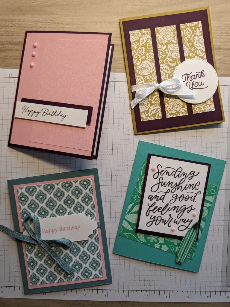 As usual, my creativity got ahead of me, so I used a more eclectic mix of products than others might have. Want to make a cohesive set? Pick two to three colors and one set of DSP and stamps.